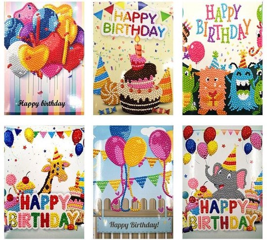 Set van 6 Diamond Painting Wenskaarten. Inclusief tool setje.