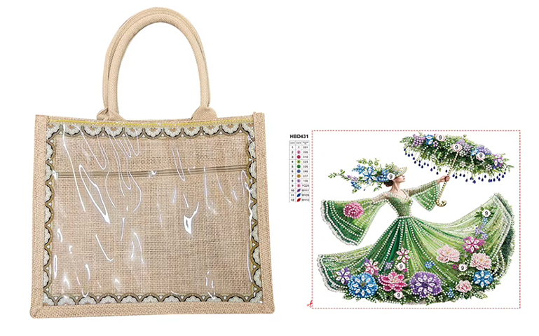 Diamond Painting tas met een vogeltje. Deze tas heeft een show venster met een rits, dit betekent dat het diamond painting gedeelte achter het venster zit en beschermt wordt tegen vuil.